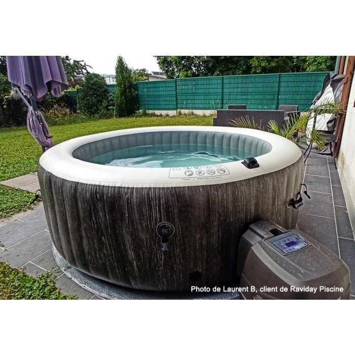 Découvrez le spa Intex Baltik, un véritable bain à remous habillé d’un effet bois gris cérusé des plus modernes. Doté d’un bon rapport qualité-prix et d’un équipement très complet, il se pare des meilleurs atout des PureSpa :